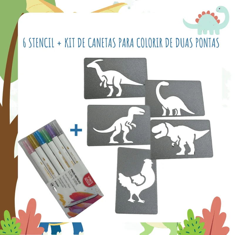 Com os Estêncil de Dinossauros, os pequenos aprendem sobre cores, formas e até um pouco sobre a história dos dinossauros, ao mesmo tempo que desenvolvem suas habilidades motoras e a coordenação. Este produto é perfeito para crianças a partir de três anos, tornando-se um presente ideal para qualquer ocasião. Adicione um toque de criatividade e diversão ao dia a dia dos seus filhos com este conjunto encantador.