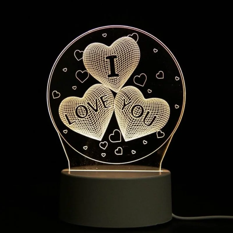Luminária de Acrílico 3D com LED e Alimentação USB | Efeito Óptico Imersivo, Tema Coração e Decoração Criativa