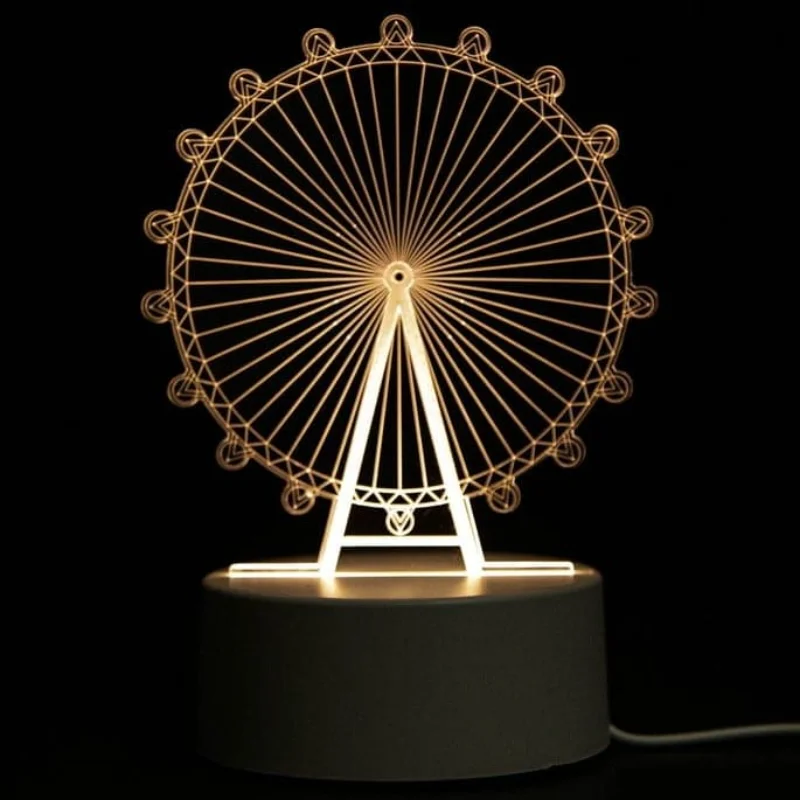 A Luminária de Acrílico com LED oferece um deslumbrante efeito 3D de ilusão óptica, transformando qualquer ambiente com sua iluminação suave e visual impressionante. O efeito 3D é criado pela luz projetada sobre o desenho de acrílico, criando uma peça decorativa única e encantadora. Ideal para decoração de casa, escritório, festas temáticas, casamentos, aniversários, ou até mesmo como um presente criativo para qualquer ocasião.