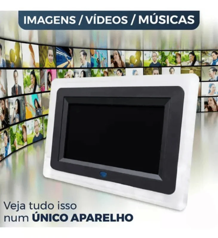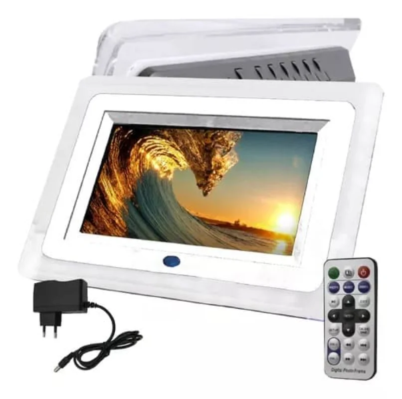 O Porta Retrato Digital 7 Polegadas LCD é a solução perfeita para exibir suas fotos digitais com estilo e praticidade. Com a função de relógio LED, calendário e alarme, além de efeitos de slides, este porta-retrato transforma suas memórias em exibição dinâmica e interativa. A tela LCD de 7 polegadas oferece imagens nítidas e vibrantes, enquanto o controle remoto facilita o ajuste de configurações e navegação entre fotos.