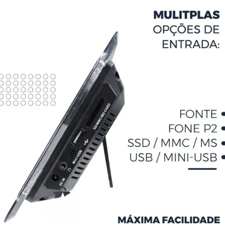 • Entrada USB, Cartão SD/MMC/MS e Mini USB.