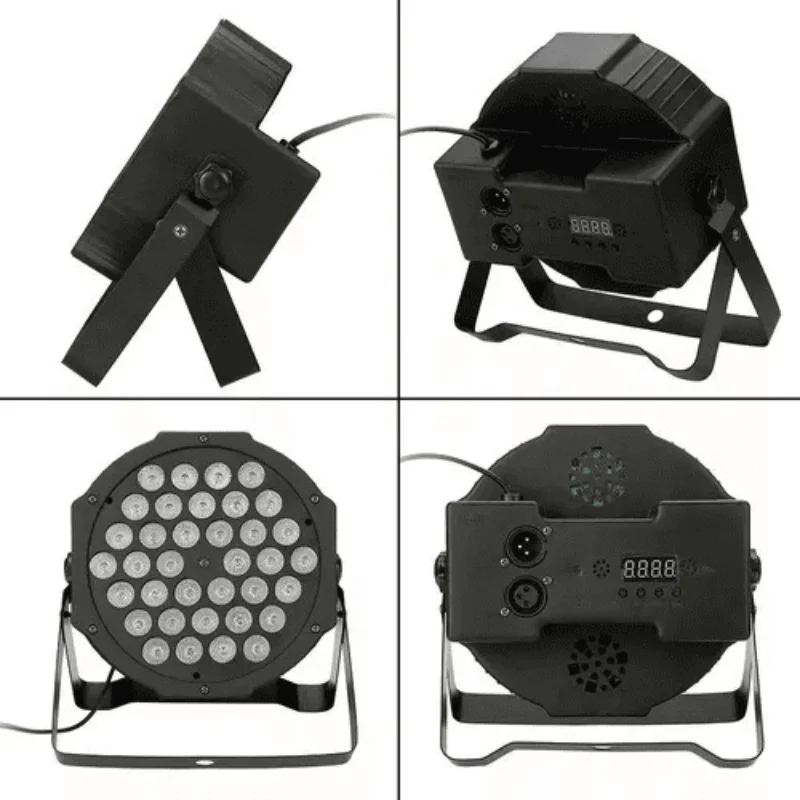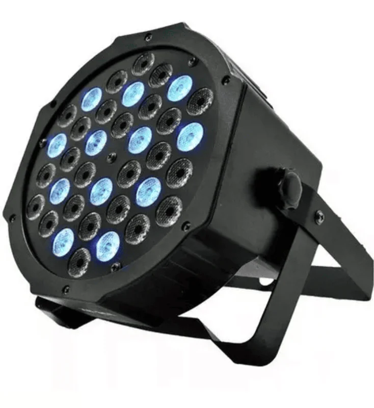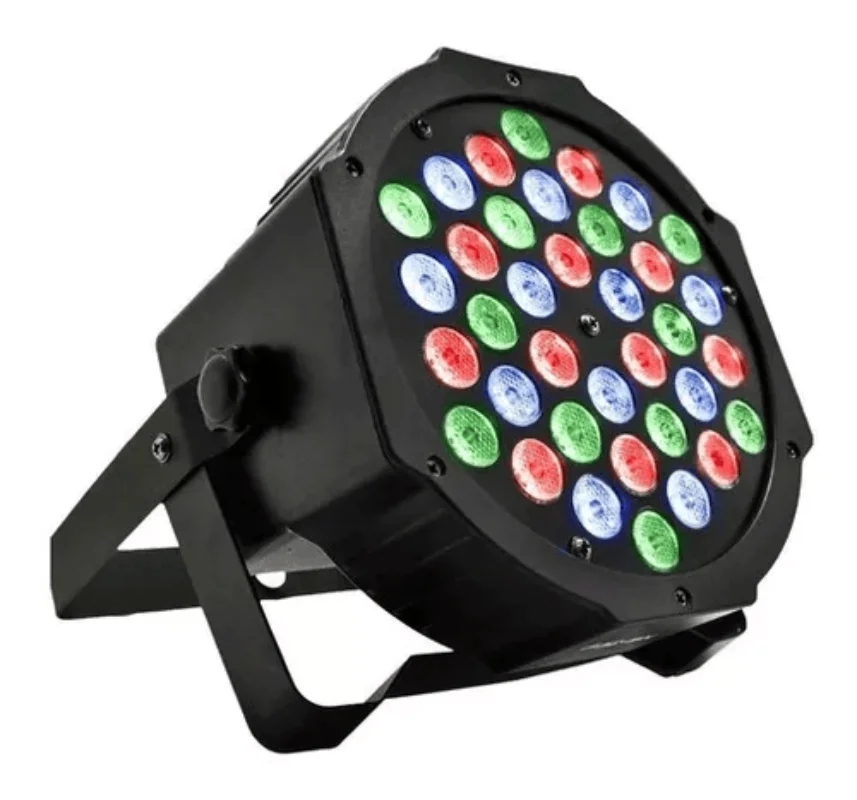 Conta com 36 LEDs RGB de alto brilho (12 vermelhos, 12 verdes e 12 azuis), oferecendo transições suaves, mudanças rápidas de cores e efeito strobo ajustável. Possui sensor de som, permitindo que os efeitos acompanhem automaticamente o ritmo da música.